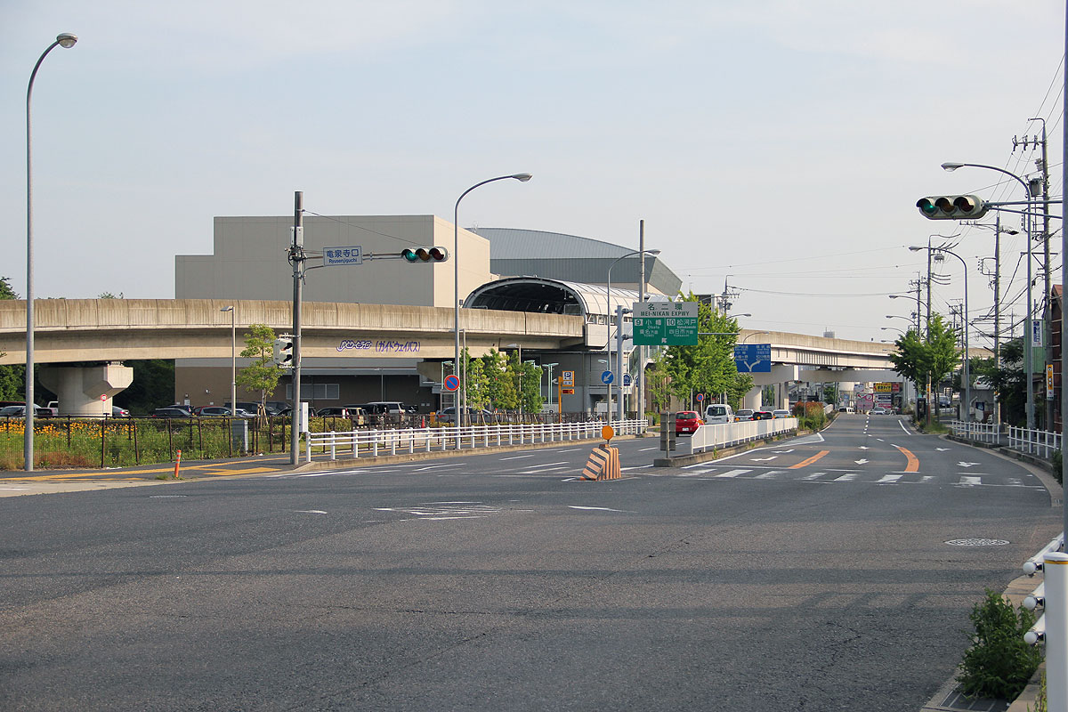 小幡緑地駅は他の1層式駅と同じ構造ですが,道路外に設置されており,駅下のスペースは広場になっています.
