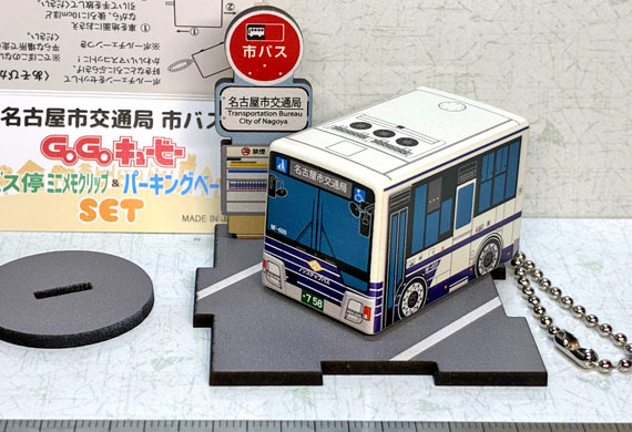 付属品の木製市バス停型のメモクリップとパーキングベース(台座)を使ってディスプレイもできます.