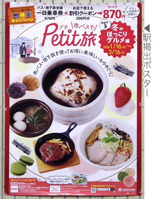 「市バス・地下鉄でマル得キャンペーン」のうち,若年層をターゲットにした市バス利用促進策「市バスでPetit旅」Part3[冬のほっこりグルメ編]が展開されました.
