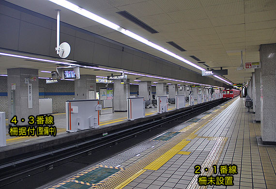 令和8年4月5日(日)の終車後に,地下鉄鶴舞線赤池駅上りホーム(3・4番線)に可動式ホーム柵が据付られました.