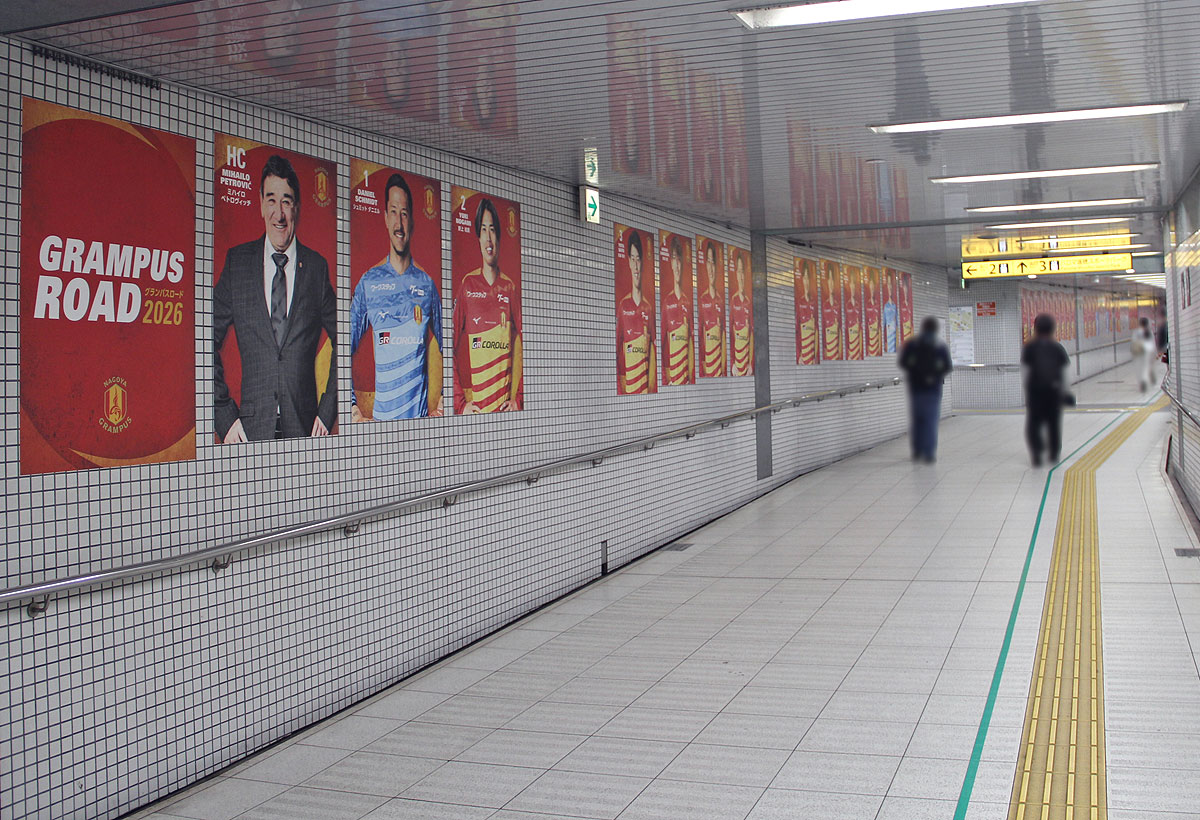 ▲地下鉄瑞穂運動場東駅3番出口通路 グランパスロード2026 |