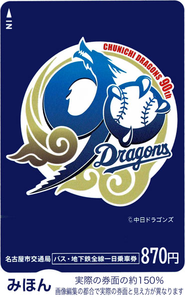 【中日ドラゴンズコラボ2026バス・地下鉄全線一日乗車券】 発売金額:870円