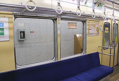 ▲側扉窓はHゴム押え 扉上に路線図を掲出 |