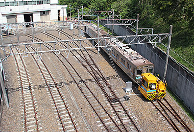 屋外作業場と修車工場内37番線との間を牽引機(アント)により移動します.