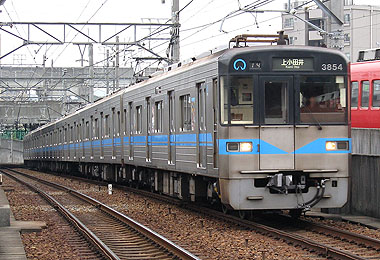 ▲上小田井方先頭車のTc車,3850形3854号車 SIV,誘導無線アンテナを搭載 |