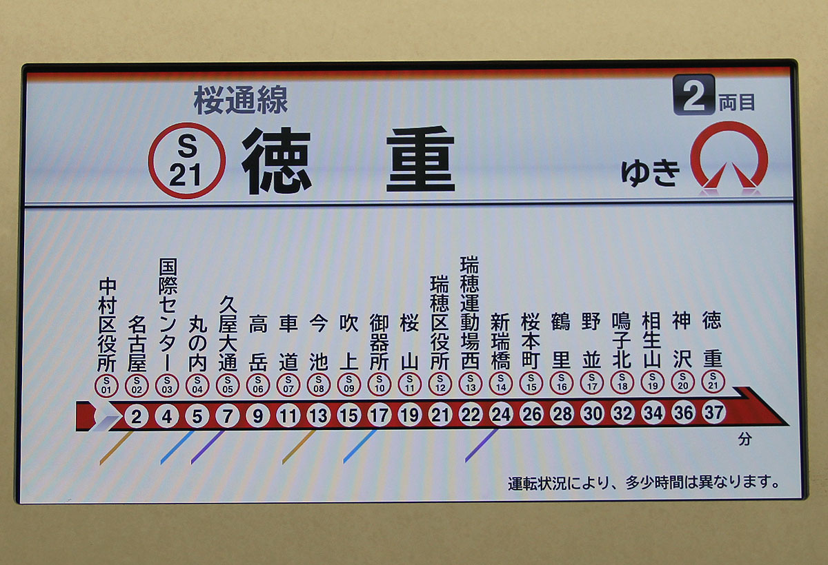 ▲[過去]桜通線停車駅案内(新製時のもの)・ ドア閉予告ランプ点灯中 |