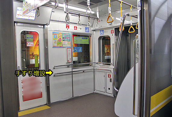 その他,途中で追加された装備として,2次車より優先席前のつり革が白色から目立つ黄色に変更されました.