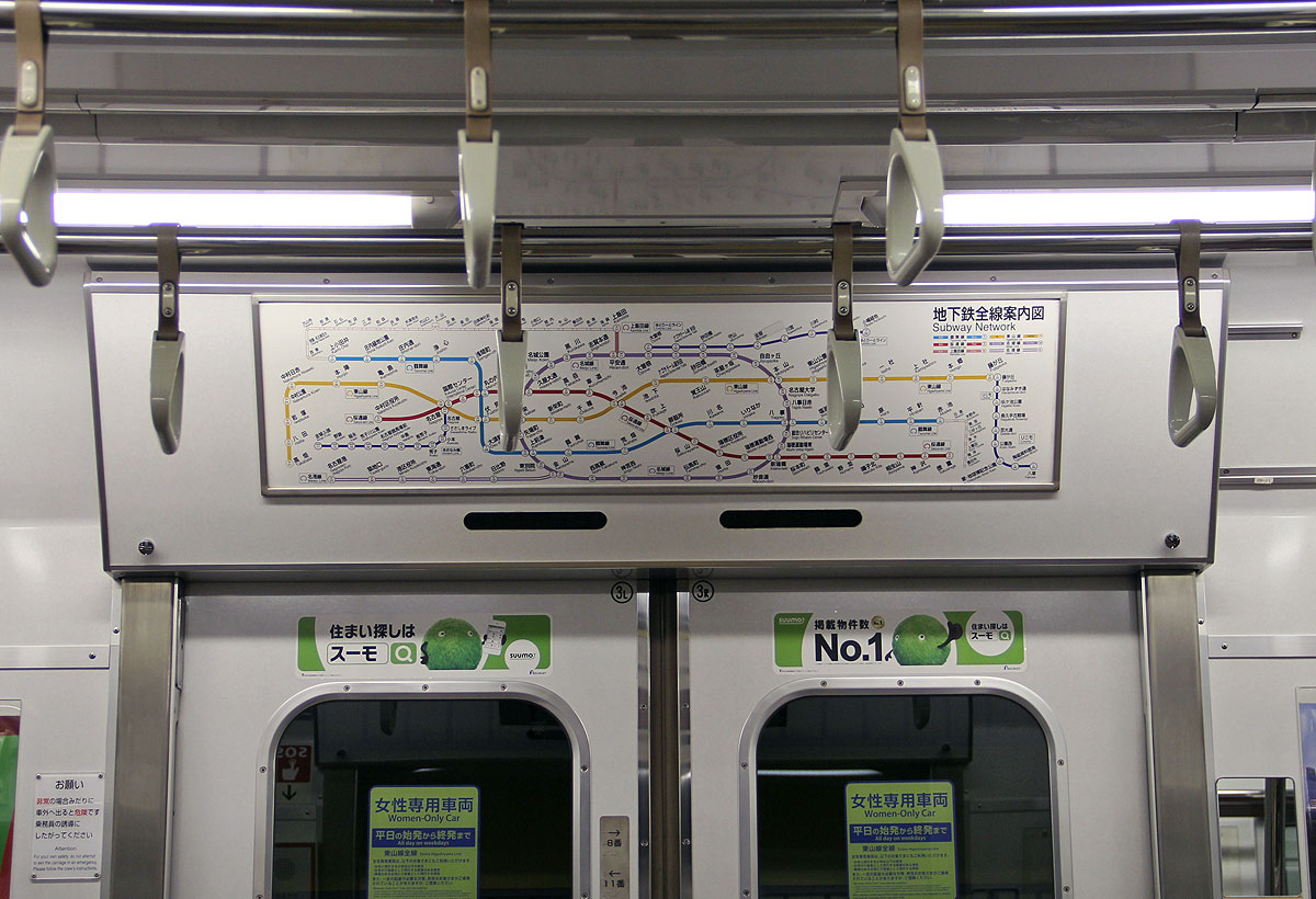 1次〜4次車は,LED式車内案内表示器はそのままで,対面の全線路線図掲出箇所に広告画面が新設されました.