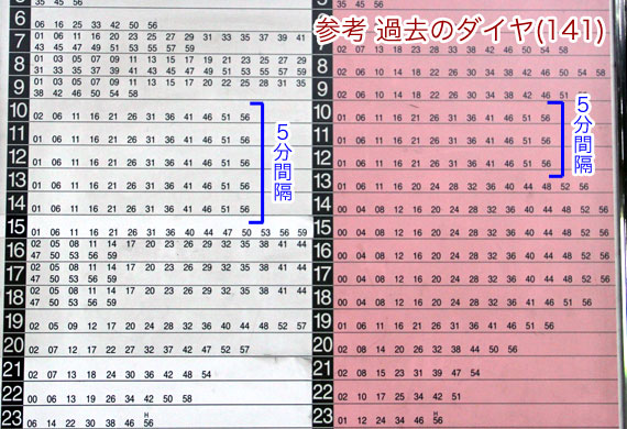 ▲(参考)過去の時刻表 5分間隔にて運転 |