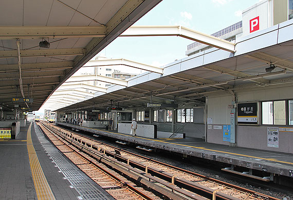 ▲藤が丘駅ホームより終端方を望む 真っ直ぐ続く線路が留置線(折返線) |