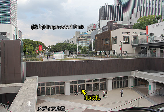 名城線開業時は北改札はありませんでしたが,名鉄瀬戸線の栄乗り入れと駅北側地下街(セントラルパーク,森の地下街北街区)の建設に合わせて昭和51年〜昭和54年に新設されました.