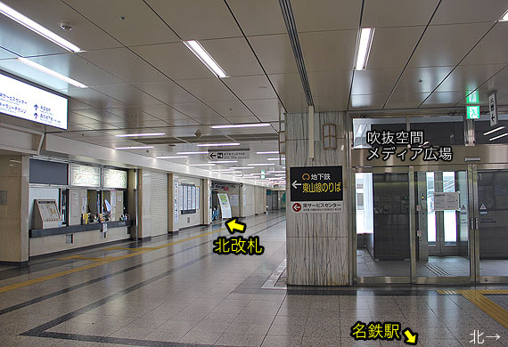 ▲(参考)北改札近くの名鉄瀬戸線栄町駅 |