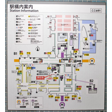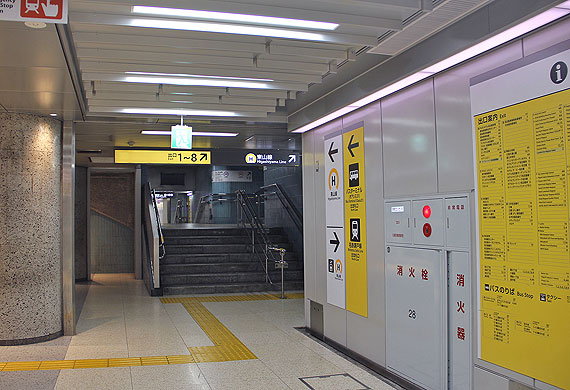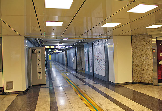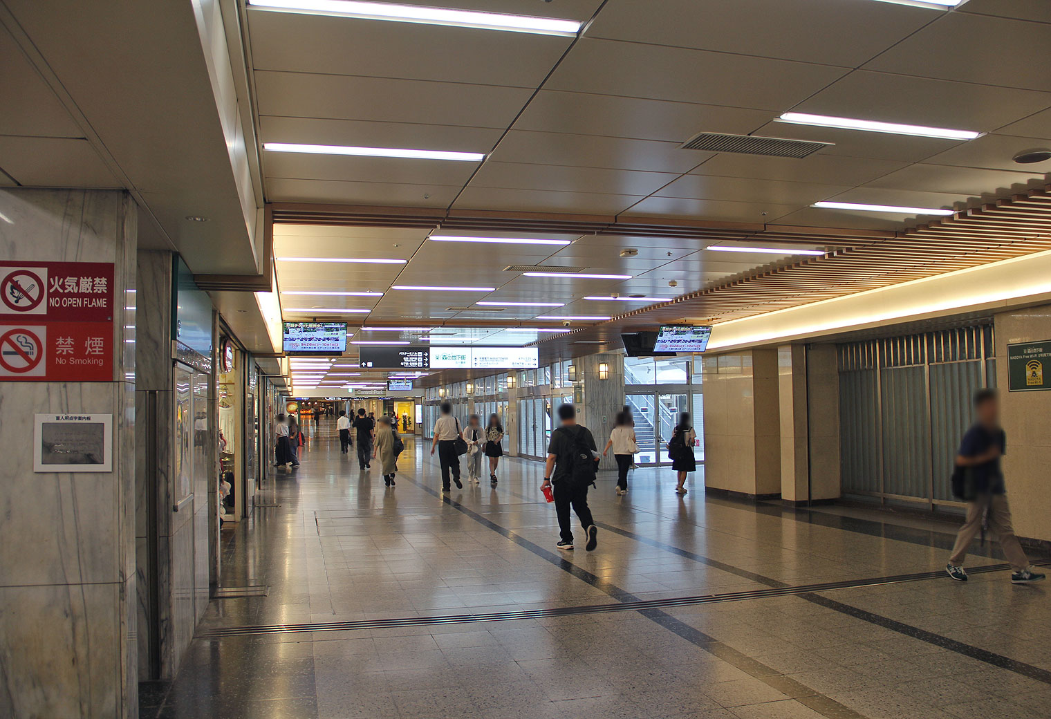 ▲地下街の中に,地下2階の地下鉄改札口や地上出口に続く通路や階段がある |