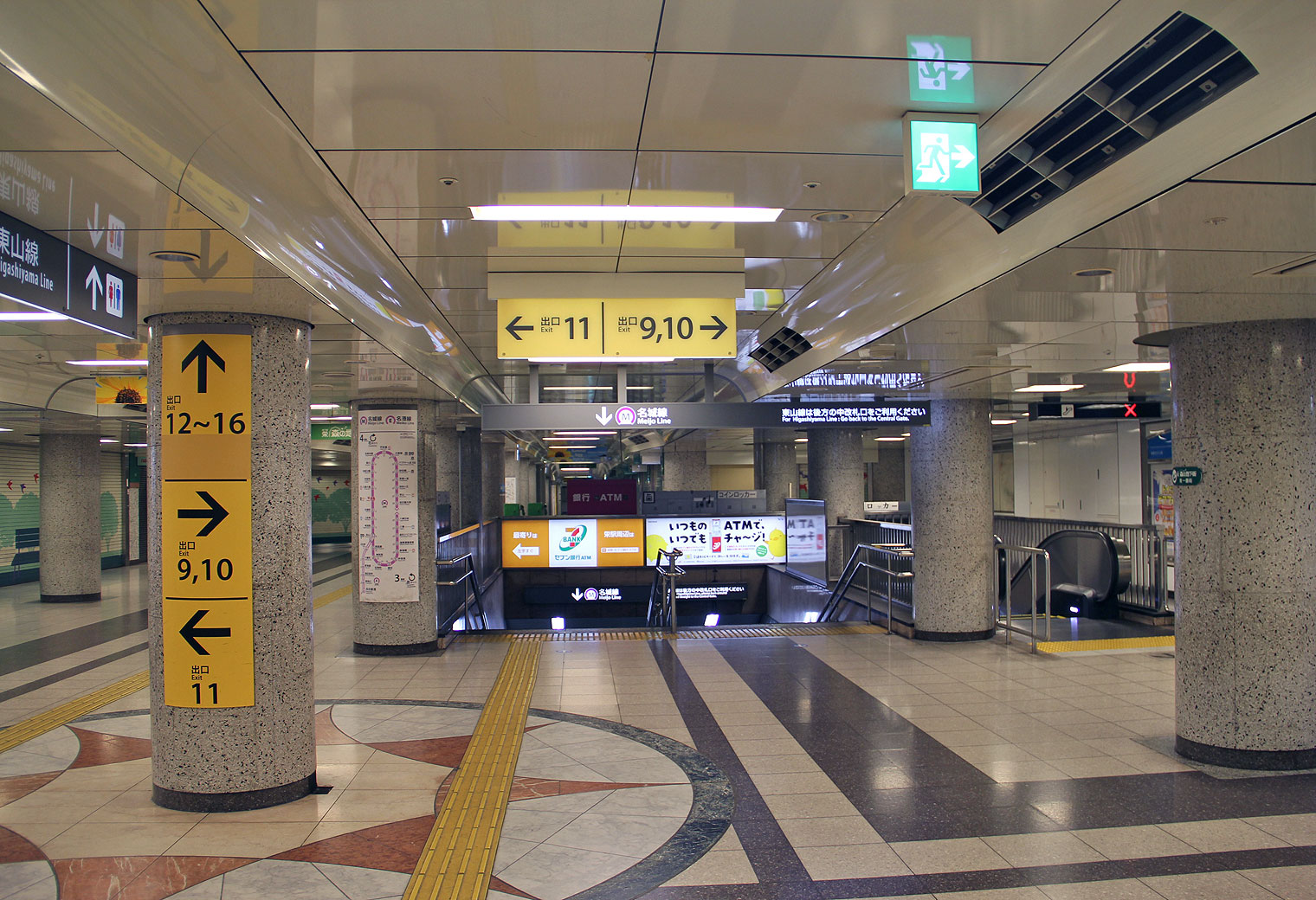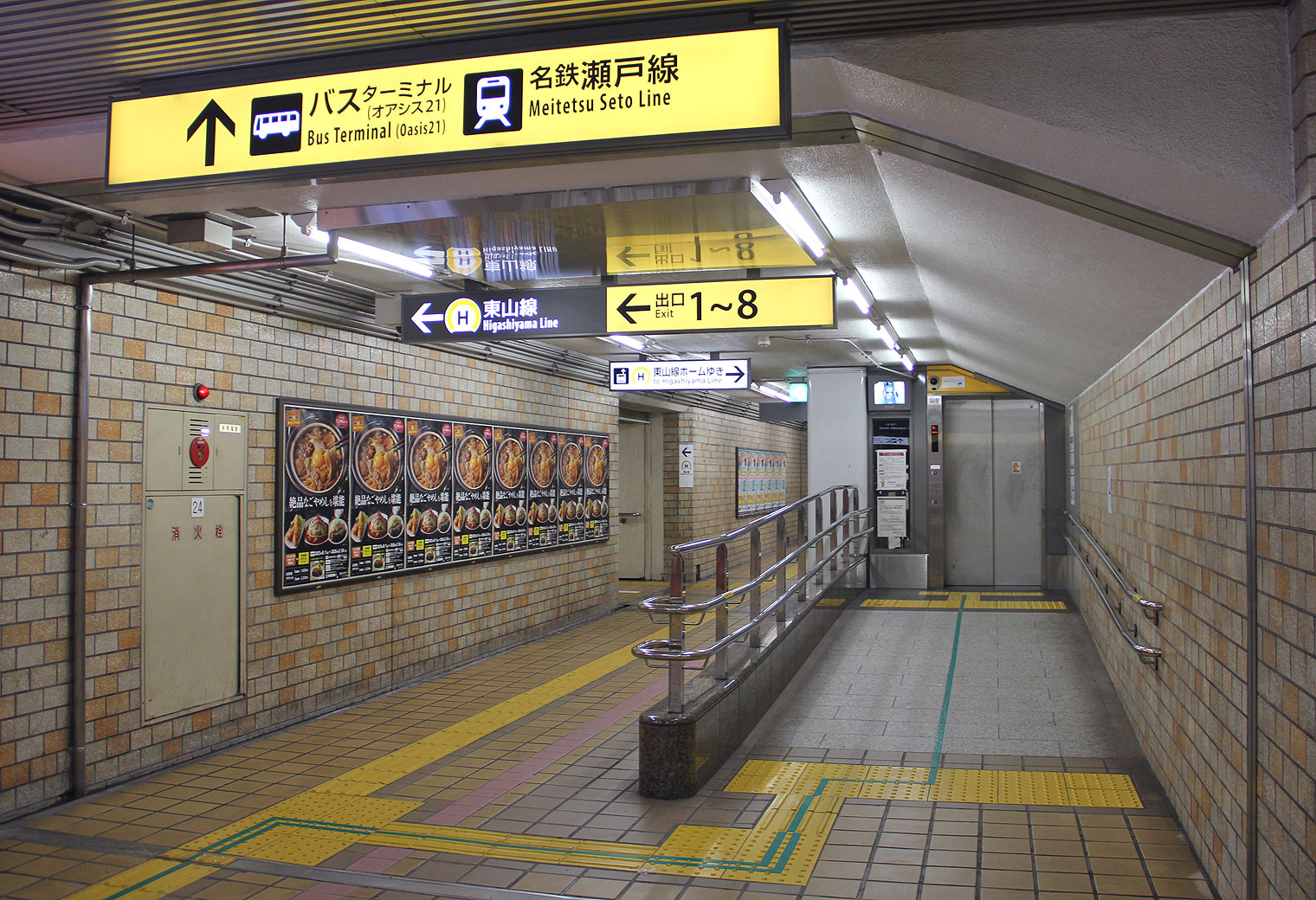 周辺は百貨店等の商業施設,オフィスビルが密集しており,通勤客・買い物客ともに非常に多く,駅利用者数は名古屋市営地下鉄では名古屋駅に次いで第2位です.