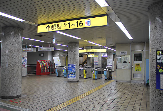 ▲地下1階の南西改札口(ラチ外より望む) 常に閑散としている改札口 |