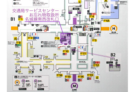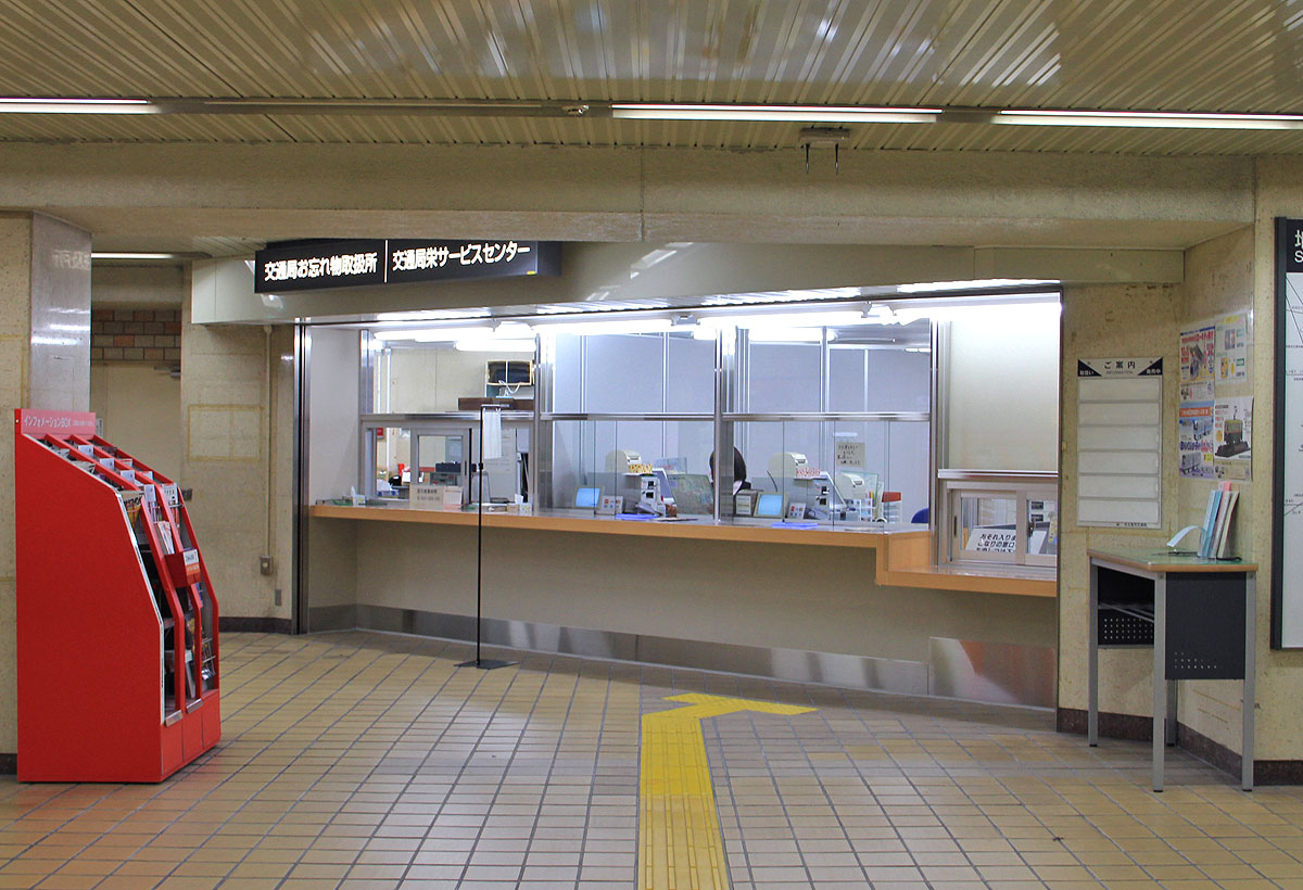 ▲南西改札横にあるお忘れ物取扱所と栄サービスセンター(定期券発行所) |