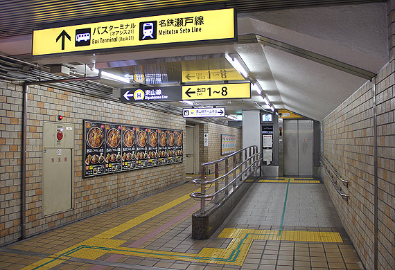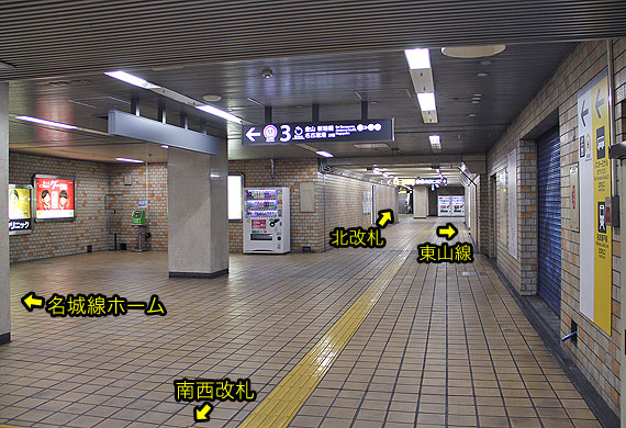 ▲東山線乗換の第2ルートと北改札・南西改札通路を兼ねる |