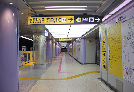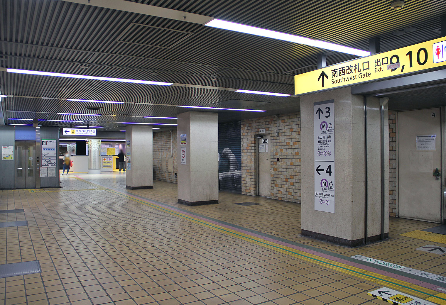 この通路を経由して,東山線ホームを経由せず北改札や南西改札に行けるほか,東山線ホームへ別の連絡階段を使って行くことができます.