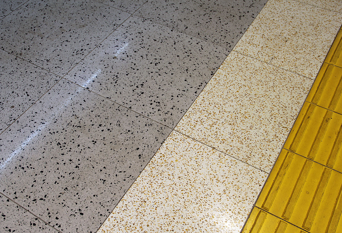 ▲北改札内(ラチ内通路) S54年増築部特有の壁面タイル |