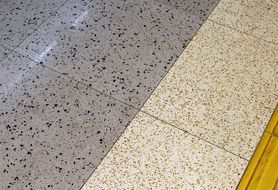 ▲床材は金銀色コーティングしたガラスチップを埋め込み |