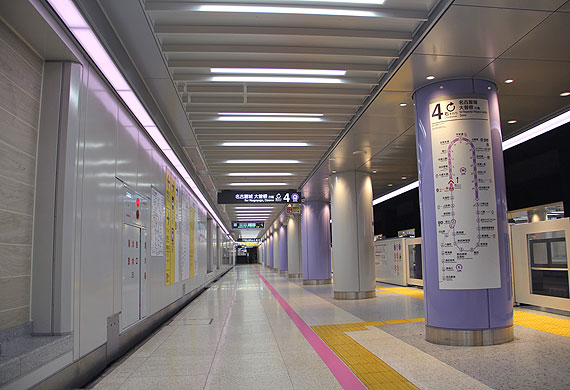 ▲地下3階 名城線ホームに平行して築造されたバイパス通路 |