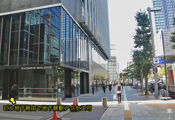 ▲駅と周辺ビルで接続しており,ビル地下経由で地下鉄駅にアクセス可能(画像は新中日ビル) |