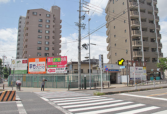 ▲駅直上の平安通交差点 南北道路(上飯田線方向)より |