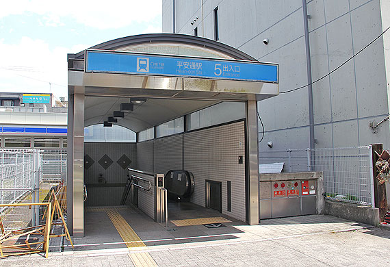 ▲上飯田線建設時に新設した5番出入口 北改札口(上飯田線)直結のため,名城線利用者は5番出入口から入場すると遠回りになる |