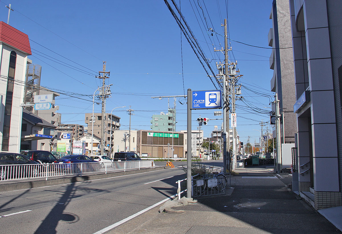 駅は東西道路「山王通」と南北道路「県道30号線(川原通)」が交差する川名交差点の下にあります.