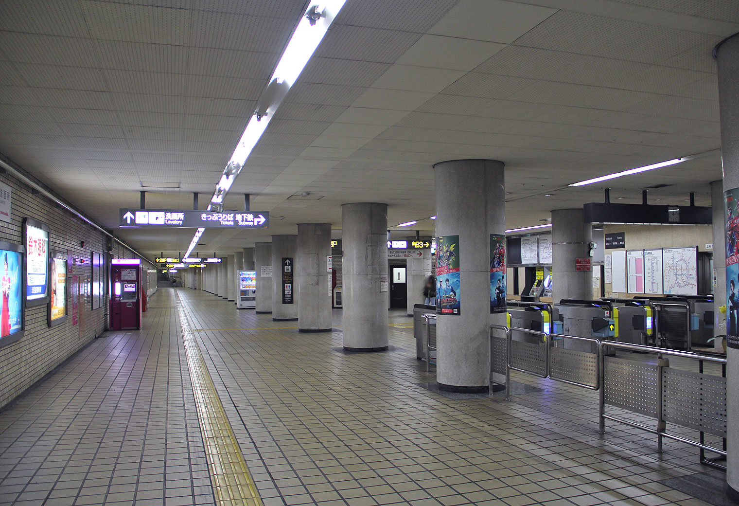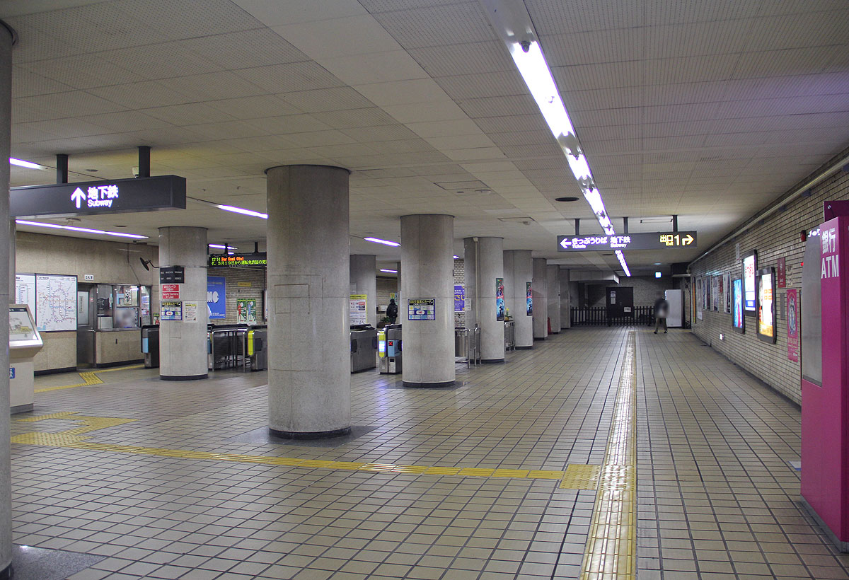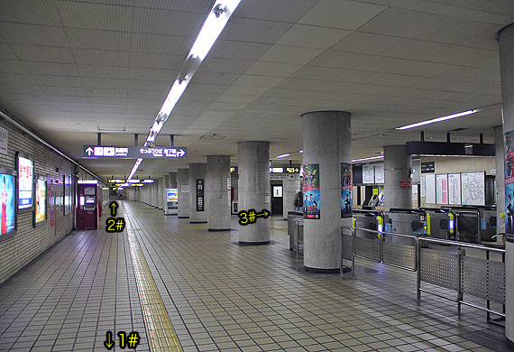 塩釜口駅は地下2層構造です.階段出入口は3ヶ所,地上EVは1基,改札口は1ヶ所です.