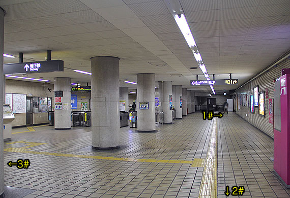 地下1階はコンコースで,2番出入口が離れた場所にあるため,通路が長くなっています.