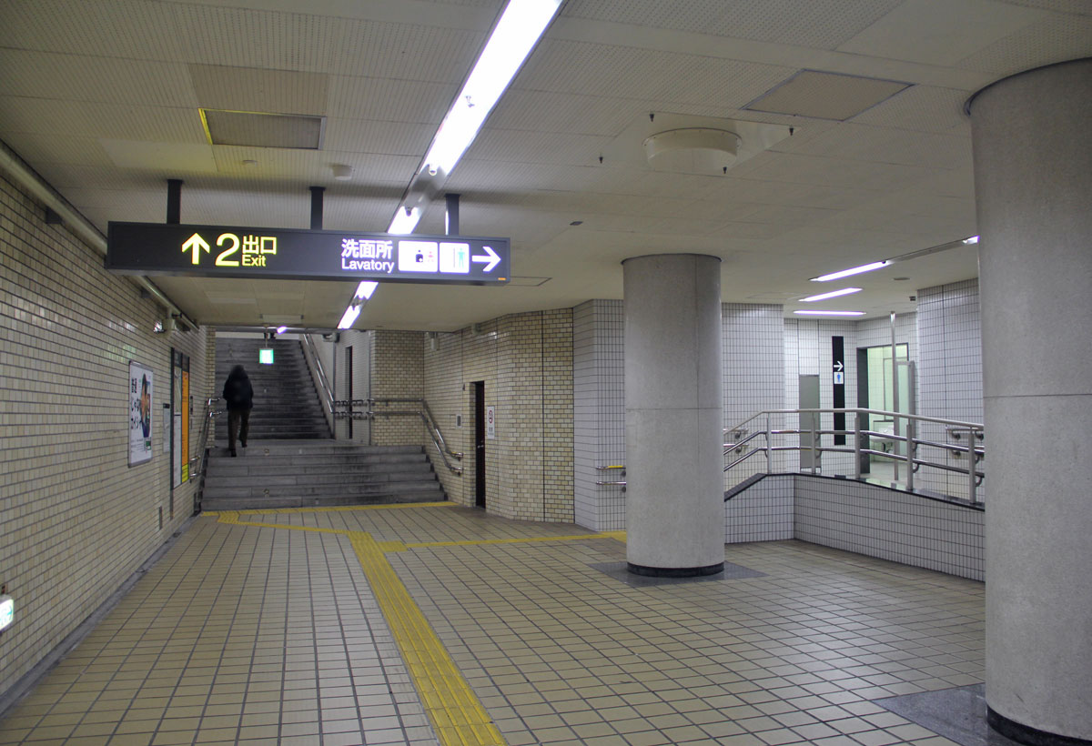 2番出入口は駅の東端に設けられています. 2番出入口周辺は植田川沿いの低地であり,平成12年9月の東海豪雨の際には2番出入口より水が流入し,線路が水没しました.