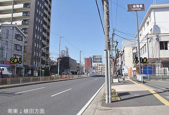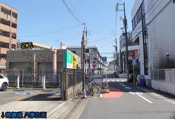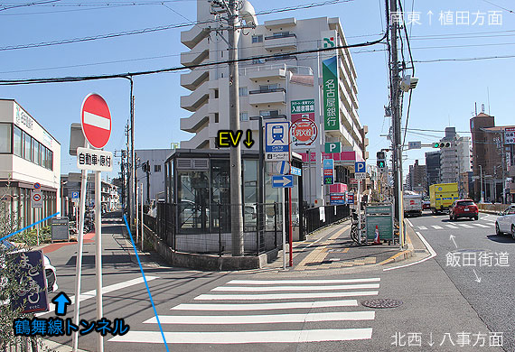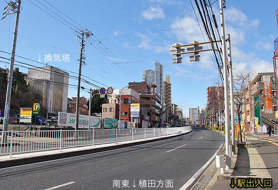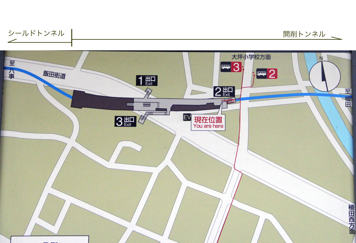 1番出入口と3番出入口は幹線道路(飯田街道)に面しています.ともに民間ビル合築構造です.