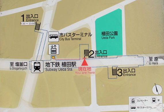 植田駅は地下2層のシンプルな構造の駅です.