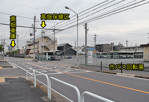 高畑車庫のさらに西側には,市バス高畑回転場があります.