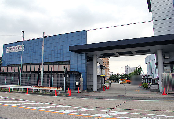 ▲名港工場正門 管理棟は3階建 交通局らしからぬ洒落た外観 |