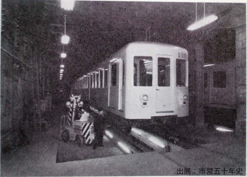 地下鉄本線終点の栄町駅から東方へ90m地下トンネルを延長して,そのうち50mの部分を拡幅して地下式の車庫としました. この車庫は簡単に修理,点検ができる設備とし,地下1階部分で車両の台車や部品などの修繕,地下2階に車両留置・検車のピットを2線設けました.