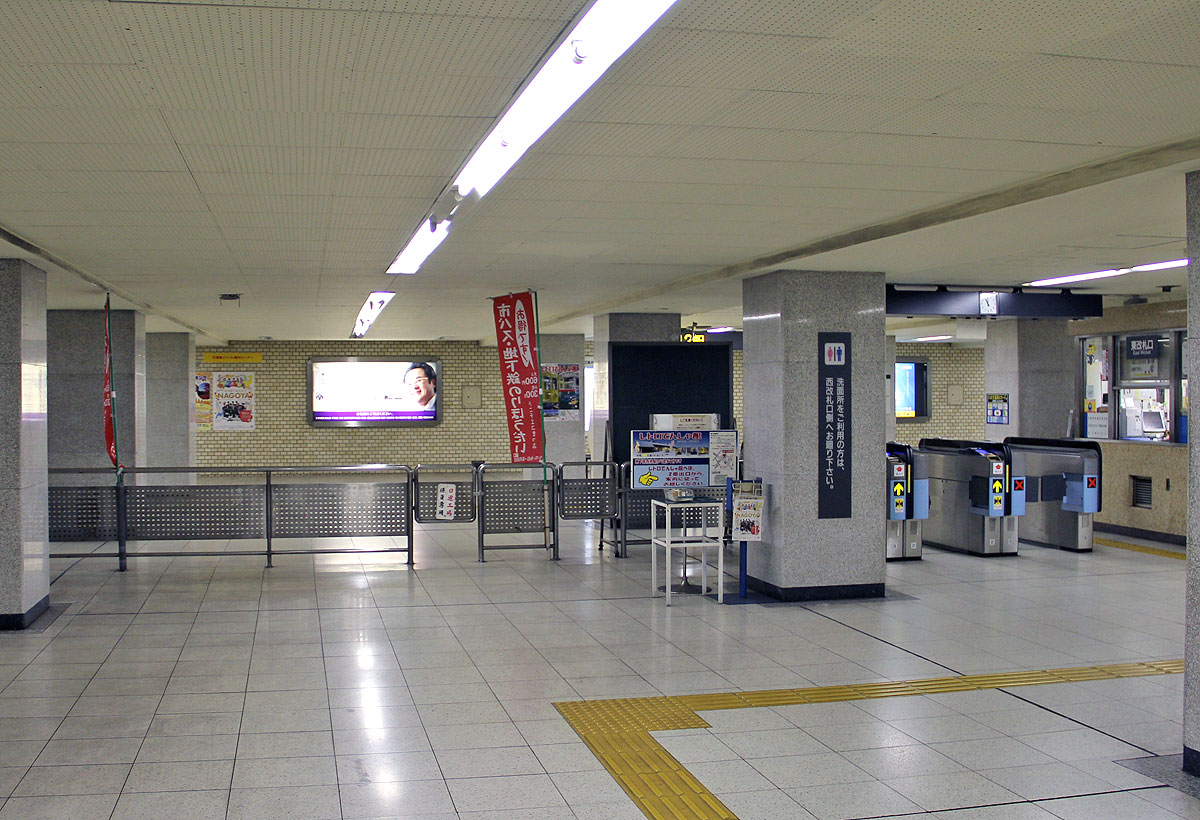 ▲赤池駅ホーム 閑散とした東改札口へ エレベーター利用の方は西改札口へ |