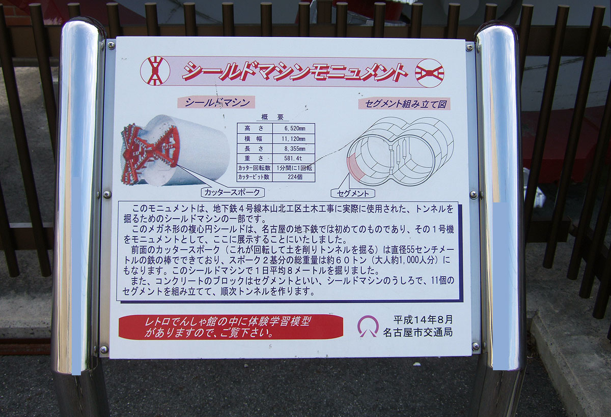 ▲実際に名城線の本山北工区で使用されたもので,複心円シールドトンネルは名古屋の地下鉄では初めてのものです. |