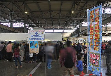 修車工場内の手作り品販売コーナーでは,地下鉄部品を職員の方が加工し作成した商品が,過去最大級の種類・品数で発売されました.