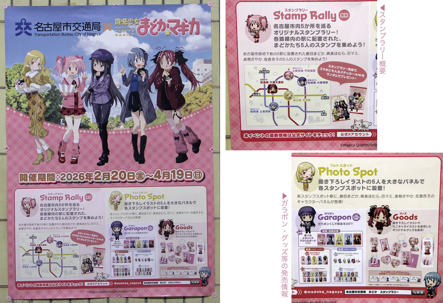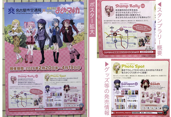 主要登場人物5人のテーマカラーが,名古屋市営地下鉄5つの路線カラーと類似しているとファンの間で話題となっている「魔法少女まどか☆マギカ」と名古屋市交通局とのコラボイベントが開催されました.