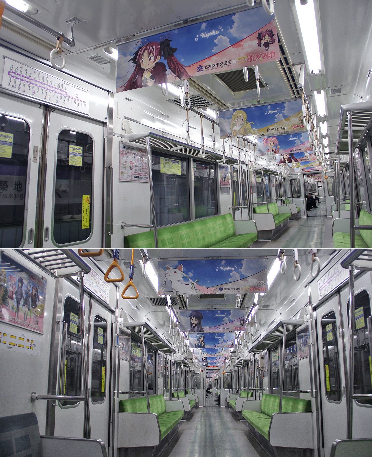 鹿目まどか…平安通駅,暁美ほむら…大曽根駅,巴マミ…今池駅,美樹さやか…上前津駅,佐倉杏子…久屋大通駅