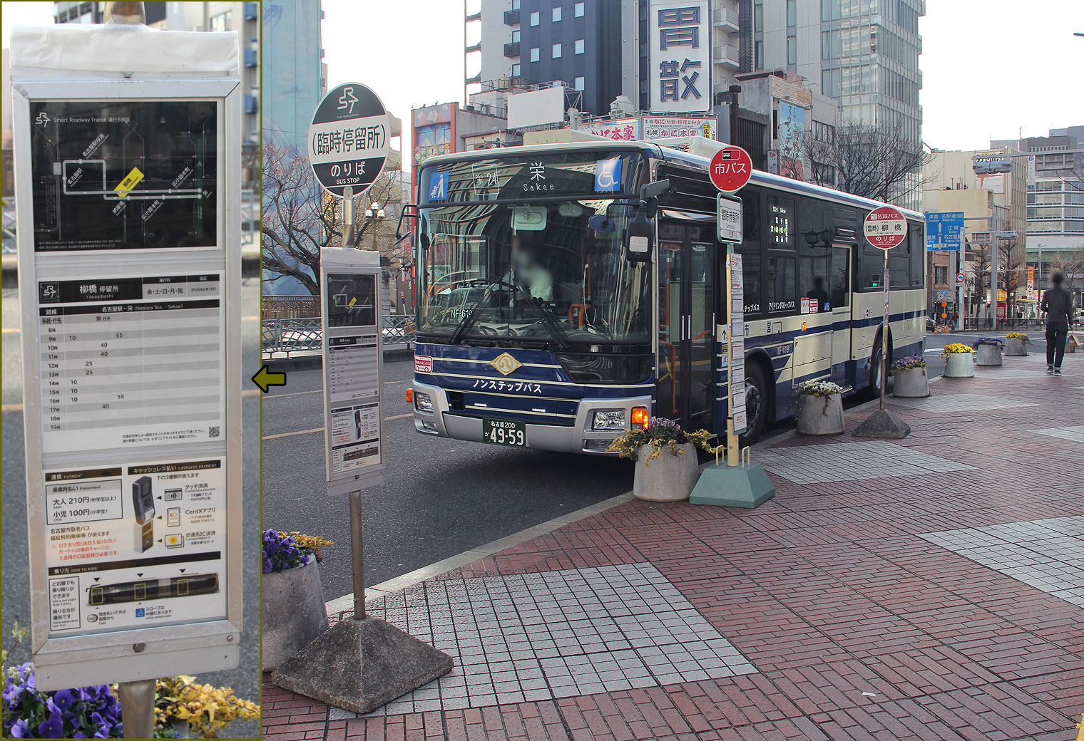 ▲SRT臨時バス停(柳橋) 名鉄バス仕様 |