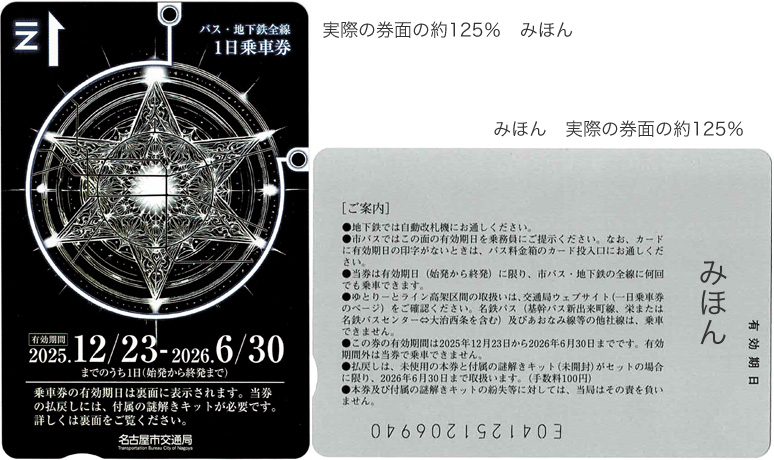 ▲昇龍道バス・地下鉄全線一日乗車券 |