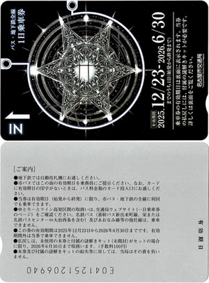 乗車券の効力は870円の市バス・地下鉄共通一日乗車券と同じですが,当乗車券単体の金額は620円に設定されています.発行は30,000枚です.